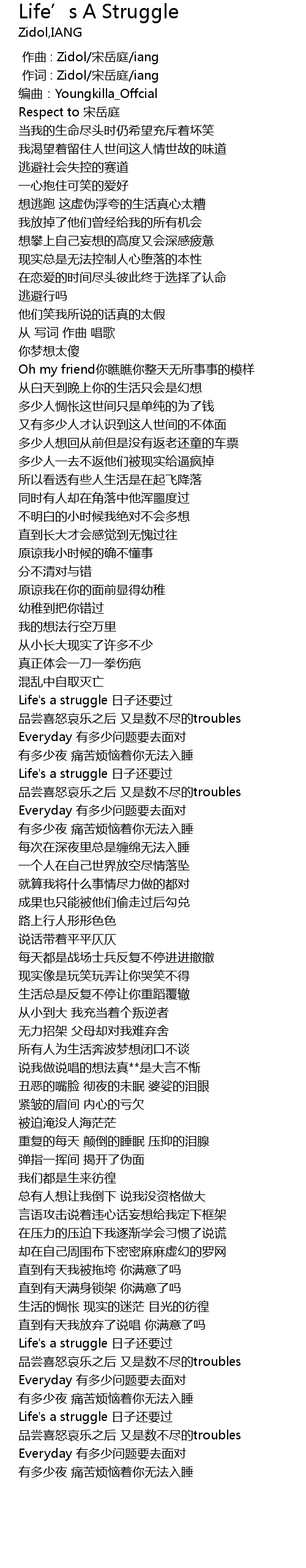 | [01:38.608] | Life' s a struggle rì zi hái yào guò |