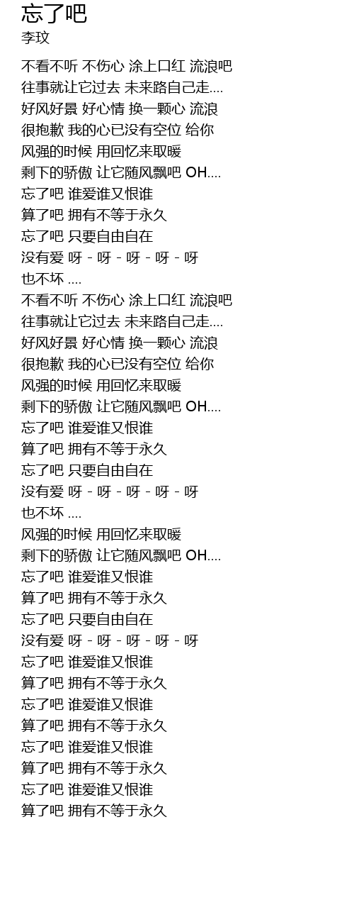 | [02:22.98] | 忘了吧 只要自由自在 |