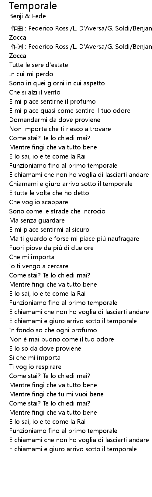 | [00:01.000] | 作词 : Federico Rossi/L. D'Aversa/G. Soldi/Benjamin Mascolo/M. Zocca |