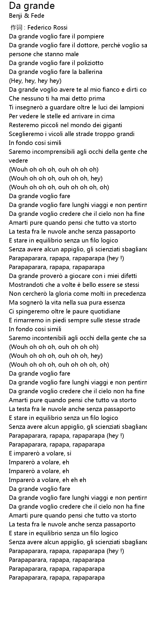 | Song | Da grande |