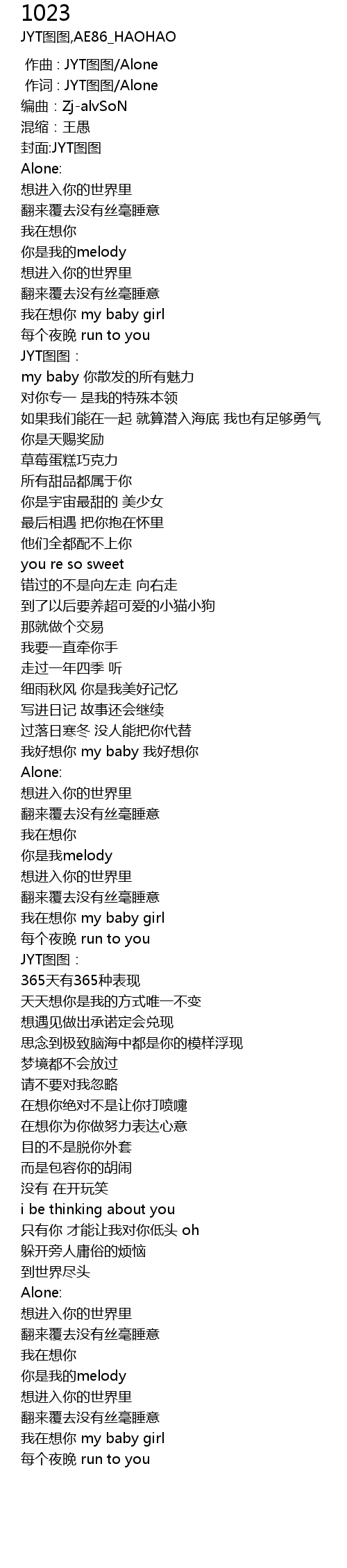 | [00:01.000] | 作词 : JYT图图/Alone |