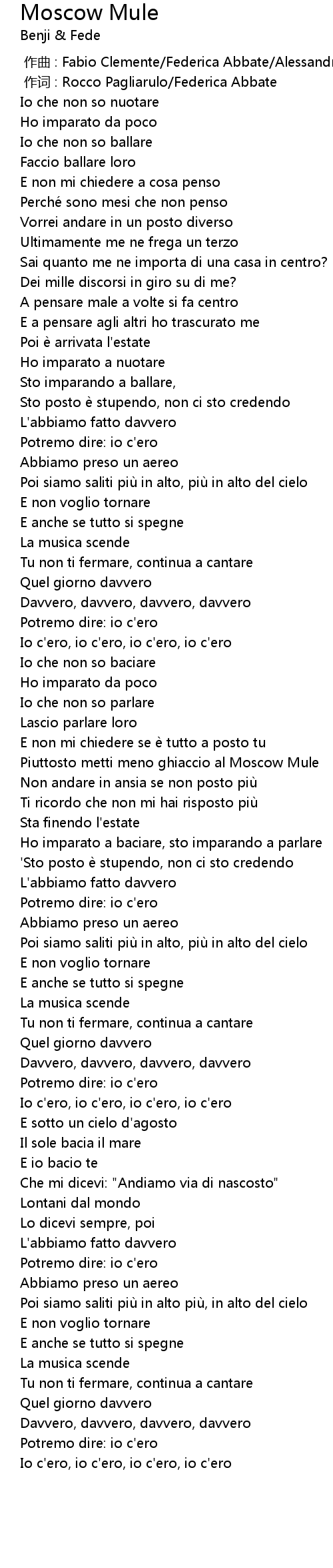 | [00:00.000] | 作曲 : Fabio Clemente/Federica Abbate/Alessandro Merli |