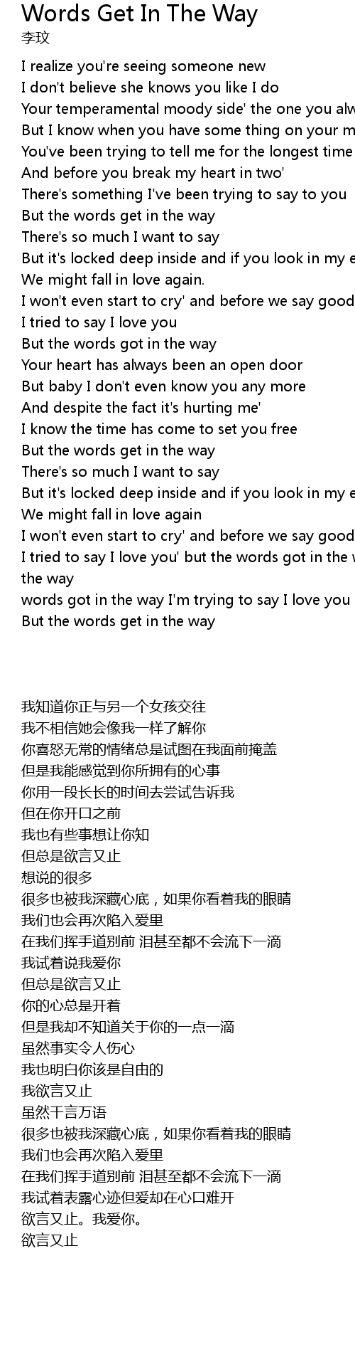But the words get in the way |