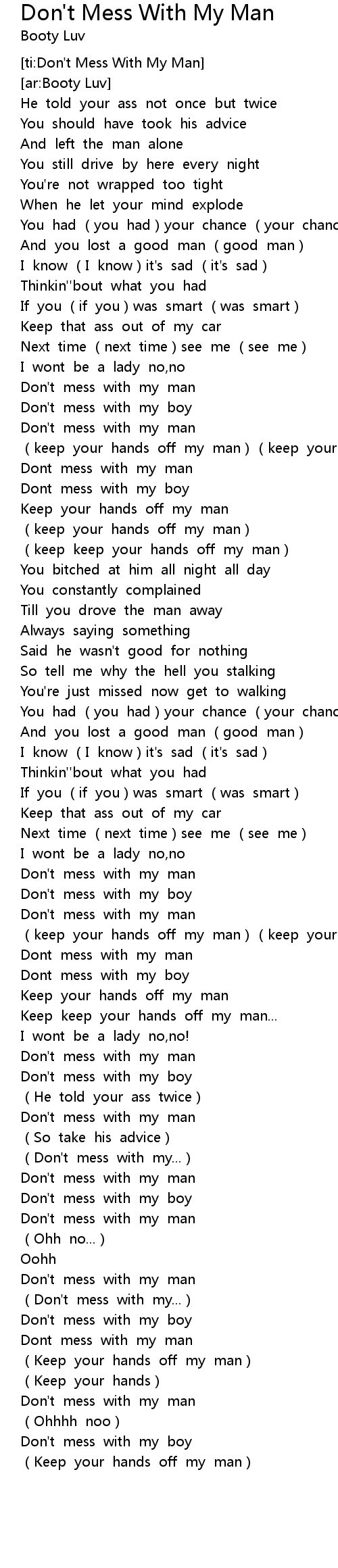 | [01:02.03] | Don' t mess with my man |