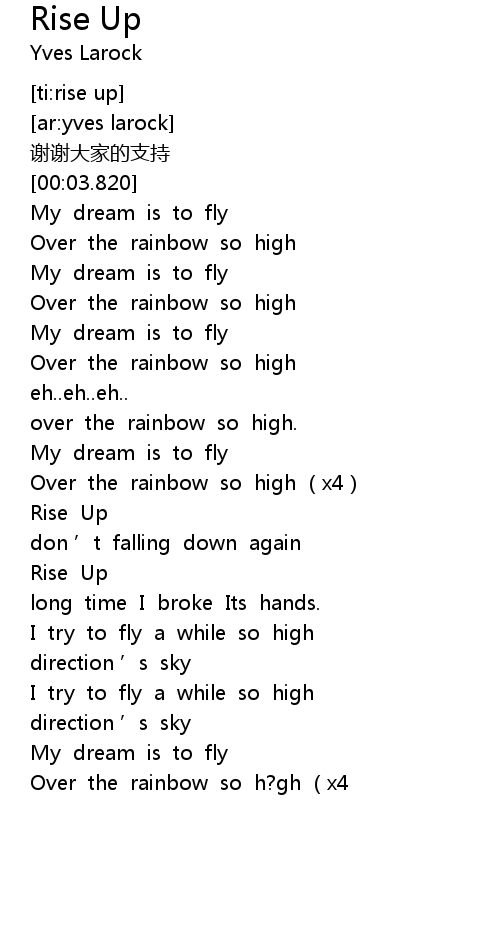 | [01:31.517] | Rise Up |