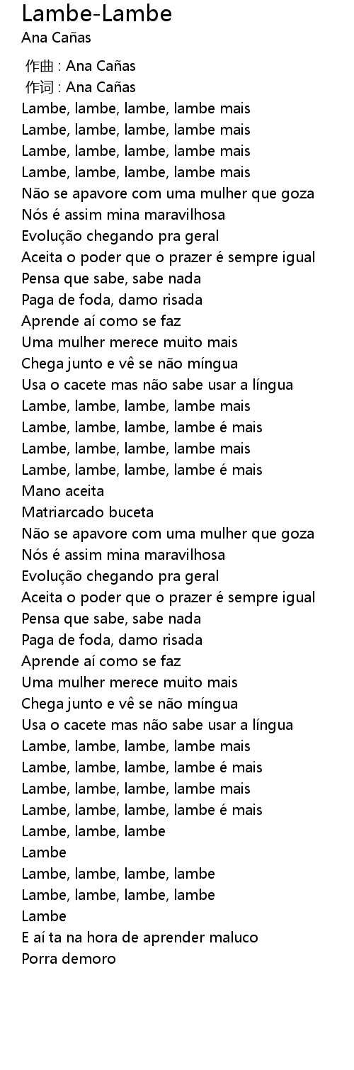 | [02:29.39] | Lambe, lambe, lambe, lambe |