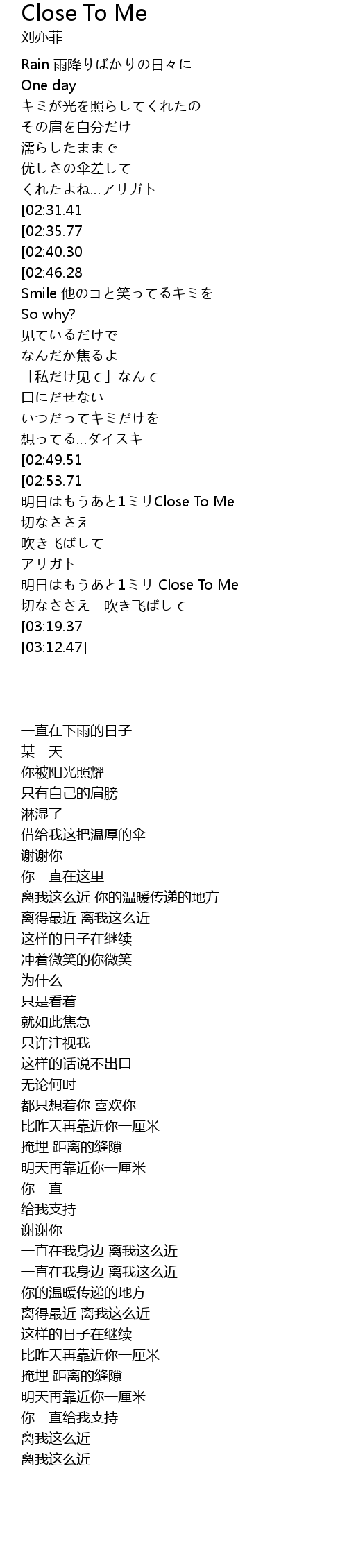 | [03:10.46][03:19.37] | Close To Me |
