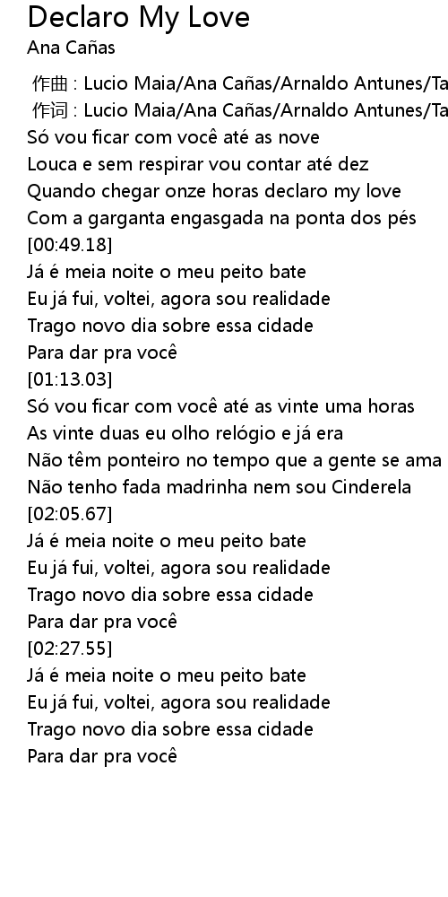 | [00:30.81] | Quando chegar onze horas declaro my love |