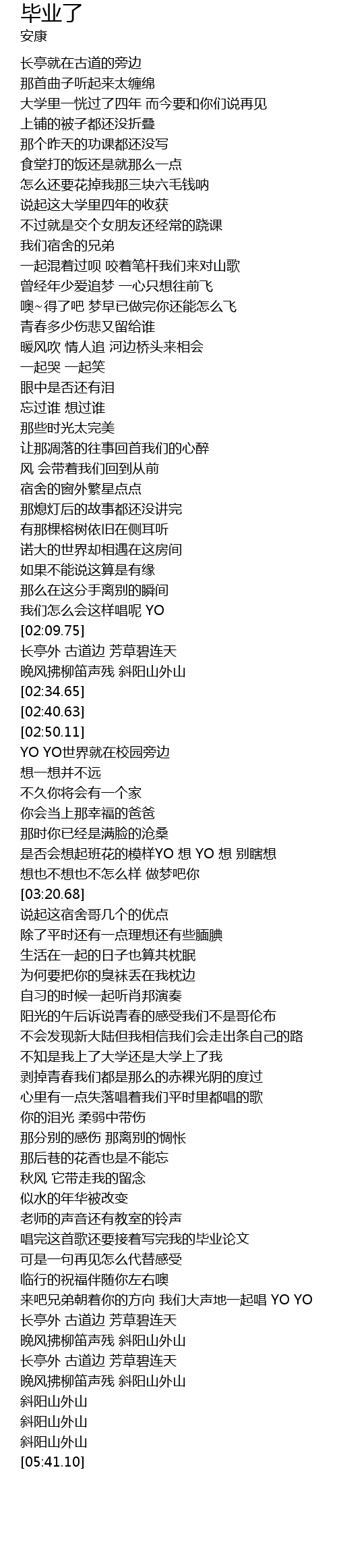 | [04:20.73] | chang wan zhe shou ge hai yao jie zhe xie wan wo de bi ye lun wen |