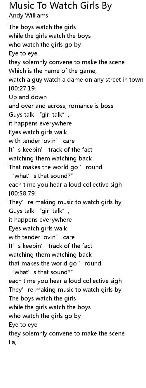 | [00:23.70] | watch a guy watch a dame on any street in town |