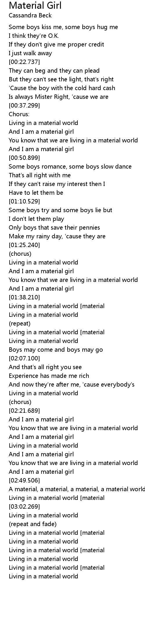 | [03:22.256]Living in a material world [material] |