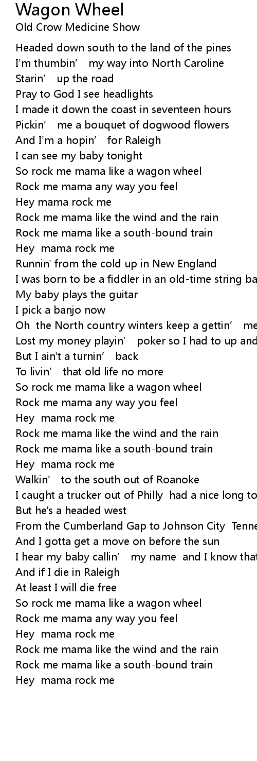 | [00:52.34] | So rock me mama like a wagon wheel |