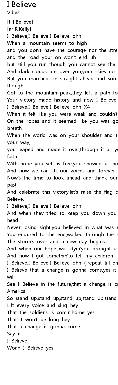| [03:11.483] | I Believe,I Believe,I Believe ohh (repeat till end) |