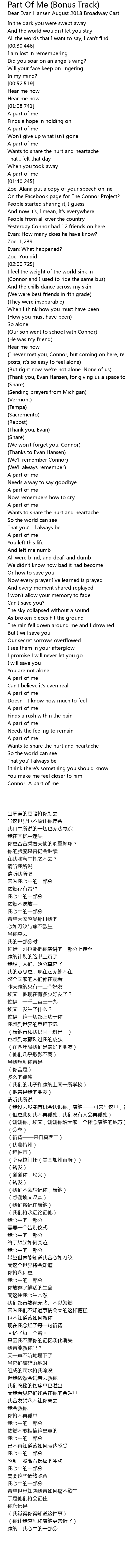 | [02:33.953] | Thank you, Evan Hansen, for giving us a space to remember Connor |