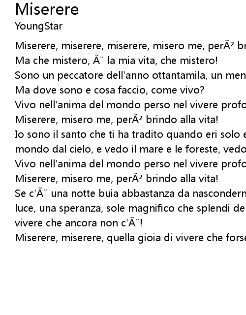 | Miserere, miserere, quella gioia di vivere che forse ancora non c'. |