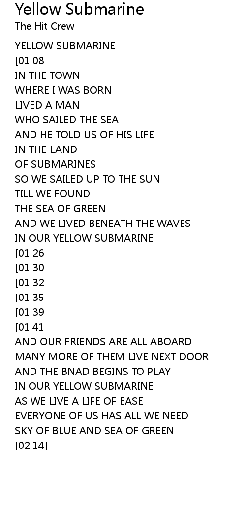 | [01:22] | IN OUR YELLOW SUBMARINE |