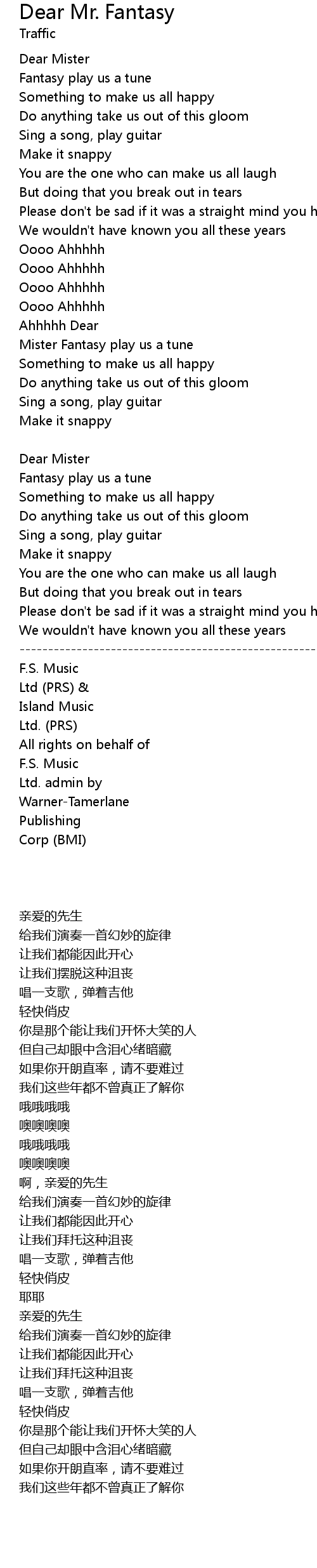 Mister Fantasy play us a tune |