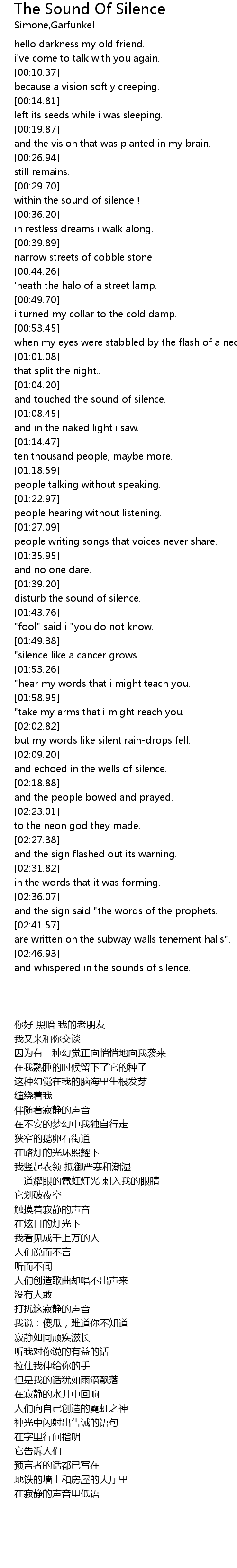 | [02:04.52] | but my words like silent rain-drops fell. |