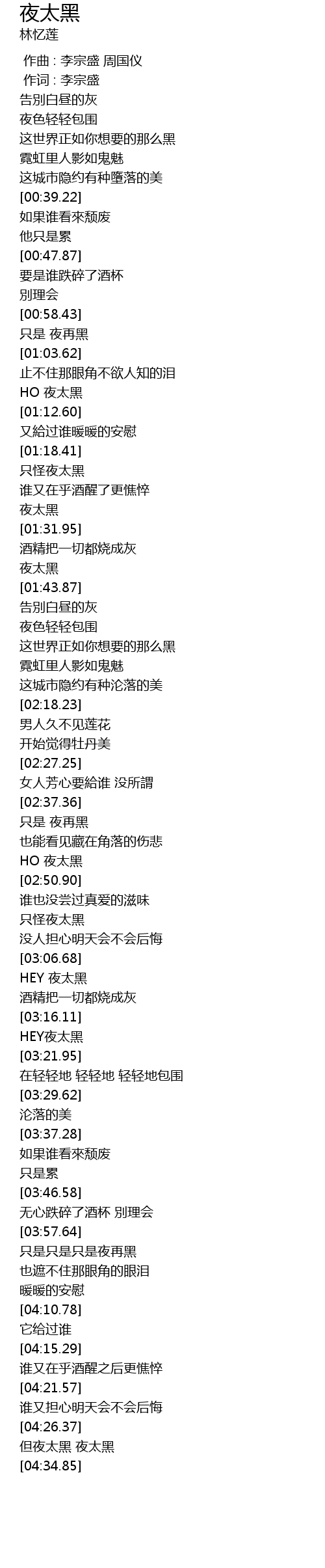 | [04:26.88] | dàn yè tài hēi yè tài hēi |