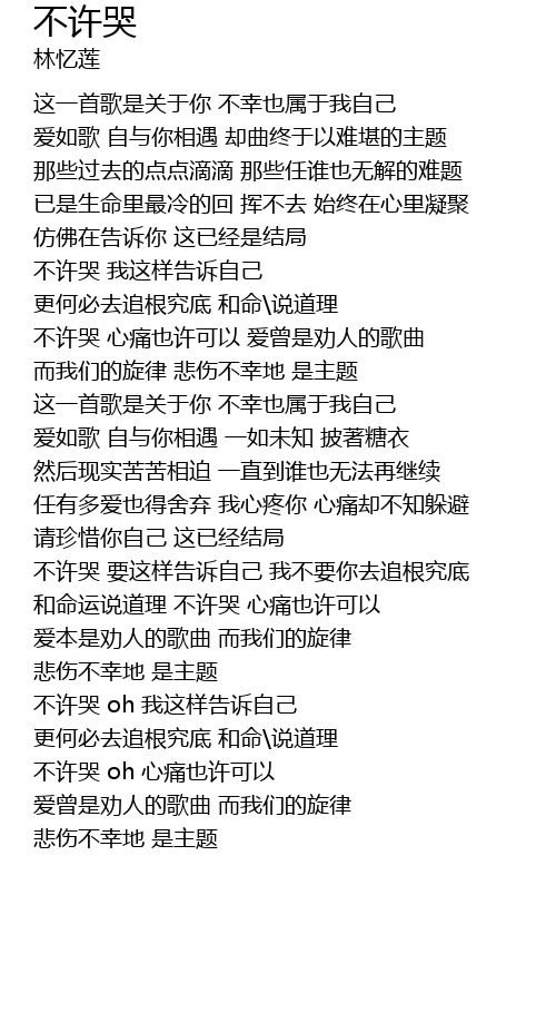| [00:58.370] | 不许哭 我这样告诉自己 |