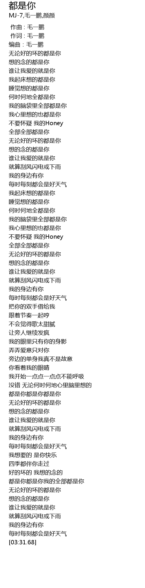 | [03:04.30] | dōu shì nǐ dōu shì nǐ wǒ de quán bù dōu shì nǐ |