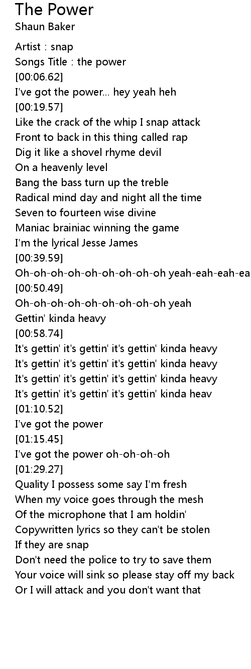 | [00:03.48] | Songs Title: the power |