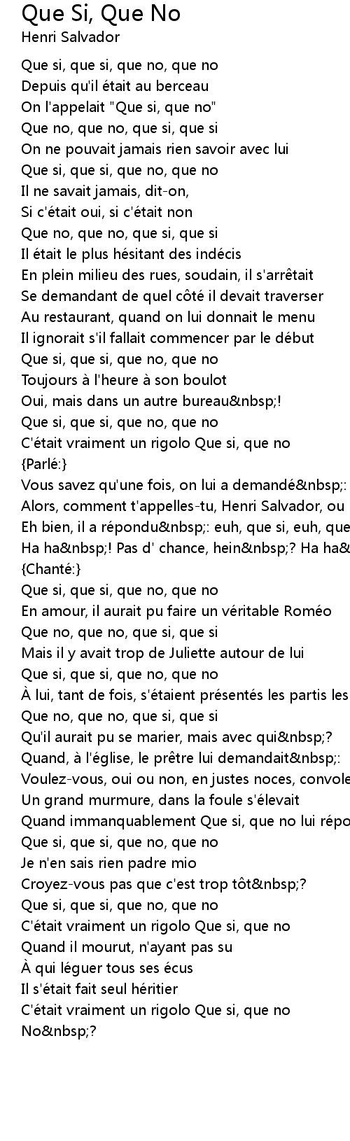 | Quand immanquablement Que si, que no lui ré pondait nbsp: | |