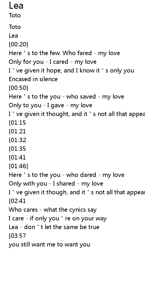 | [04:02][03:57][03:52][03:47][03:41][03:36][03:31][03:26][03:21][03:16] | Lea - do you still want me to want you |