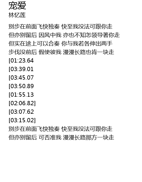 | [02:11.53] | 别步在前面飞快独奏 快至我没法可跟你走 |