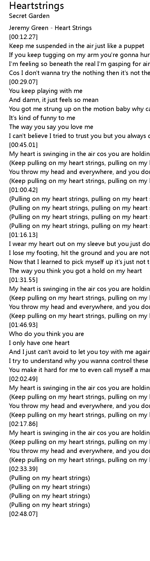 (Keep pulling on my heart strings, pulling on my heart strings) |