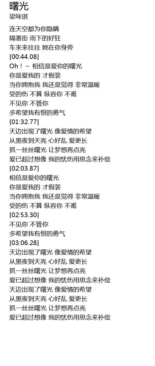 | [03:07.96] | 天边出现了曙光 像爱情的希望 |
