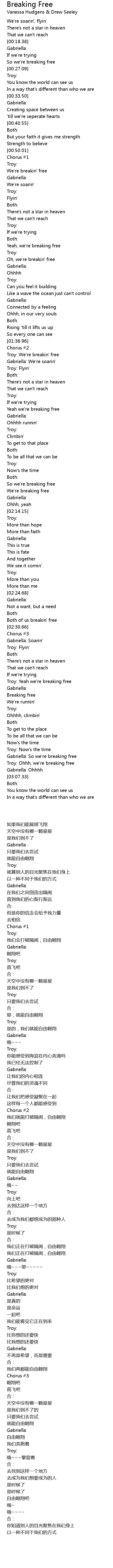 Gabriella: So we're breaking free |