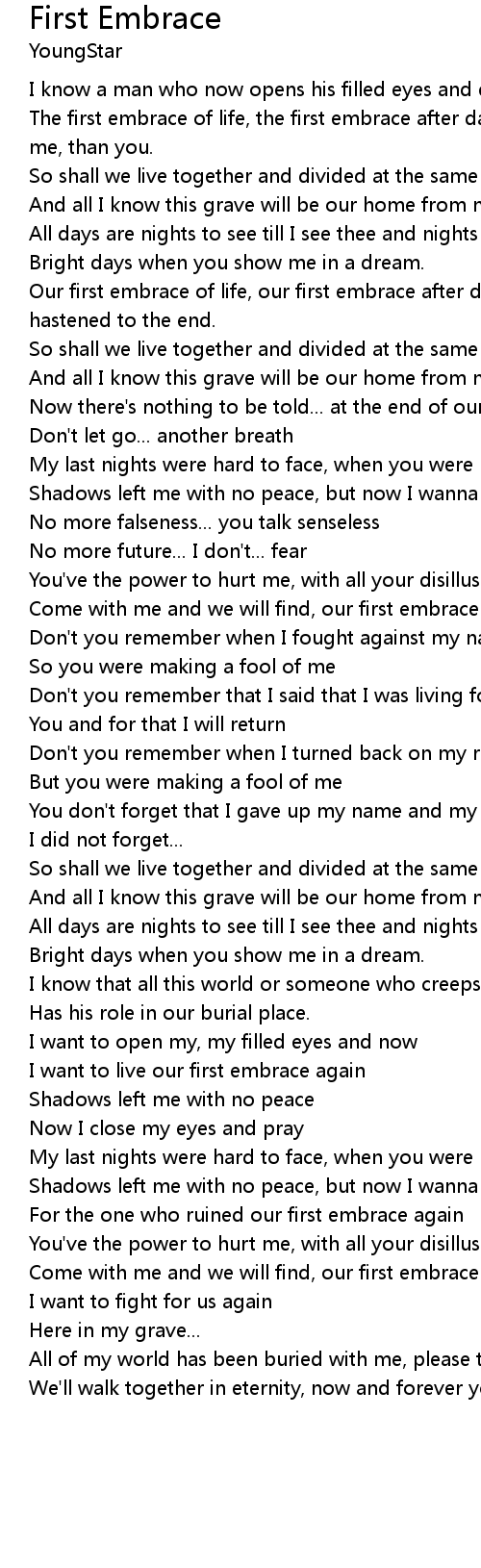 Come with me and we will find, our first embrace again |