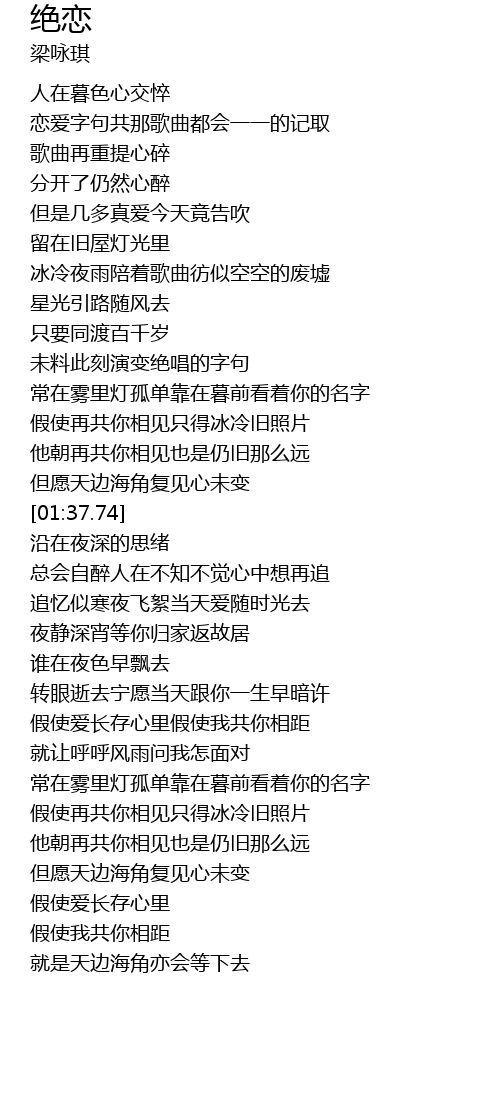| [01:30.46] | 但愿天边海角复见心未变 |