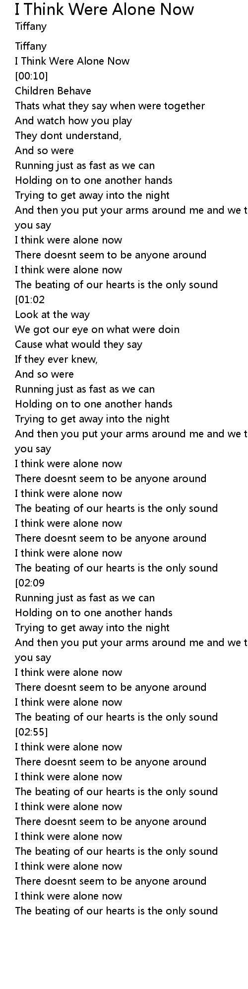 I Think Were Alone Now |