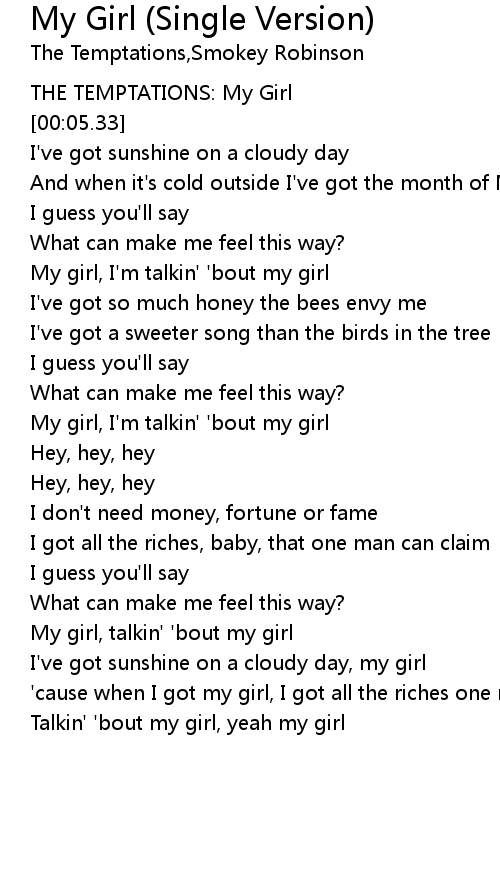 My Girl (Single Version) Lyrics