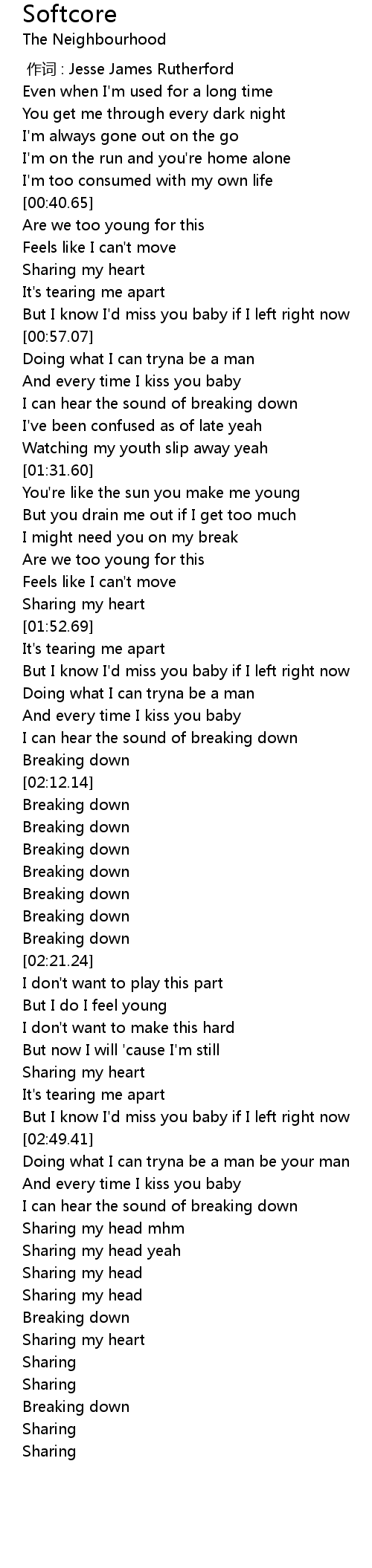 | [02:11.45] | Breaking down |