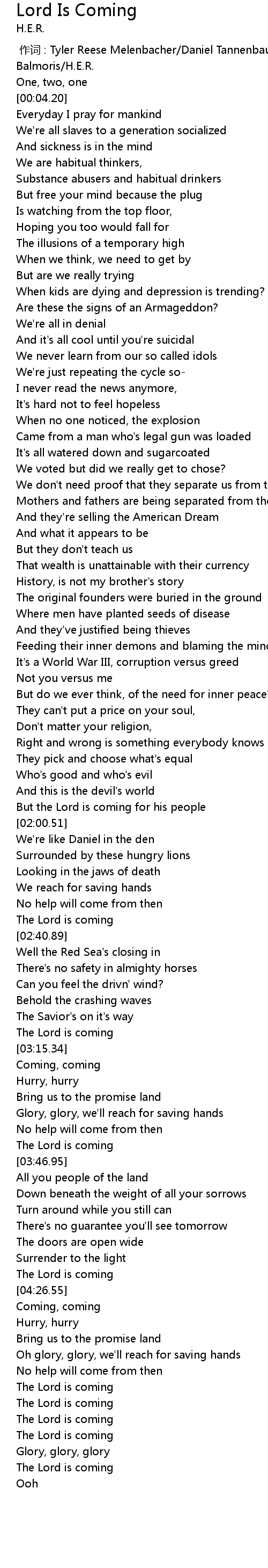 | [05:03.64] | The Lord is coming |