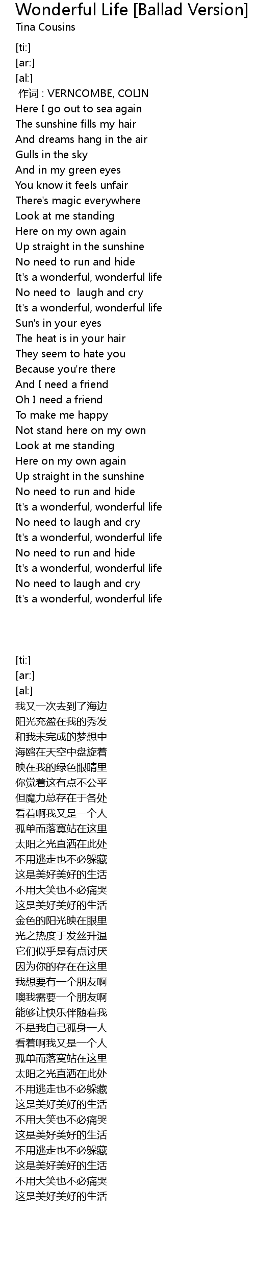 | [02:48.92] | It' s a wonderful, wonderful life |