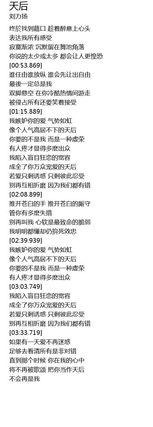 | [04:12.339] | 将不再被歌颂 把你当作天后 |