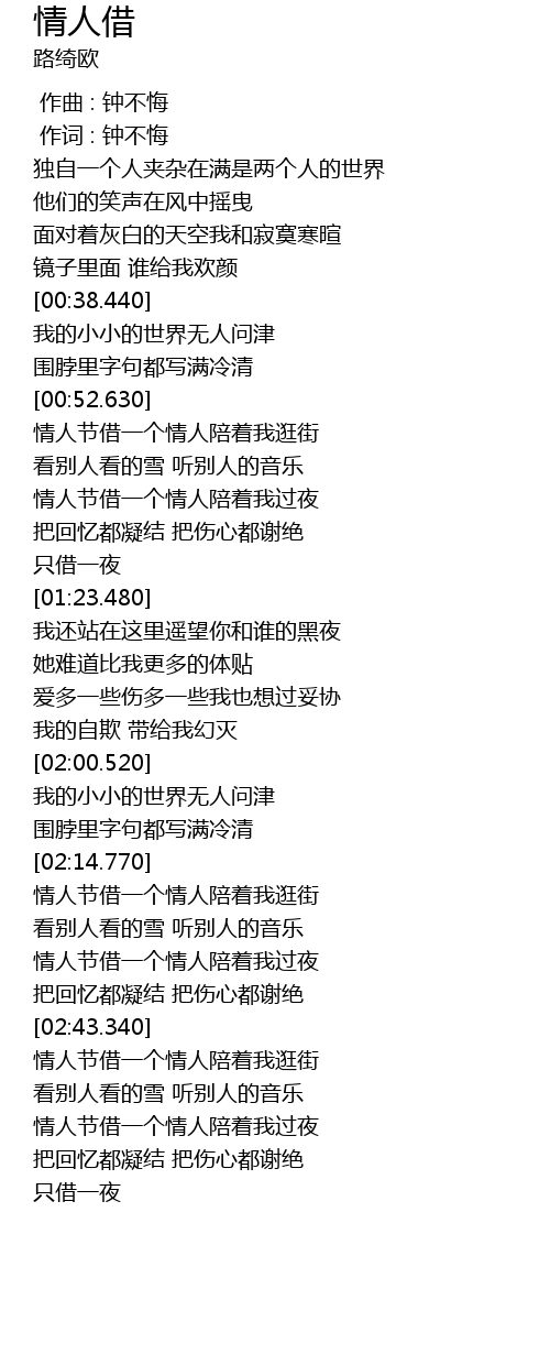 | [02:16.490] | 情人节借一个情人陪着我逛街 |