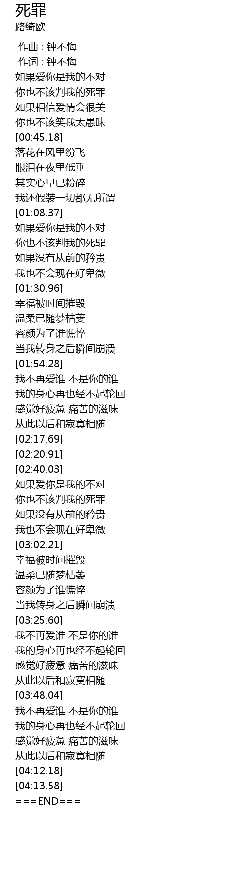 | [02:46.68] | nǐ yě bù gāi pàn wǒ de sǐ zuì |