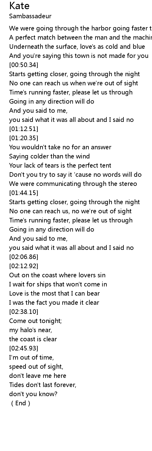 | [01:32.48] | Your lack of tears is the perfect tent |