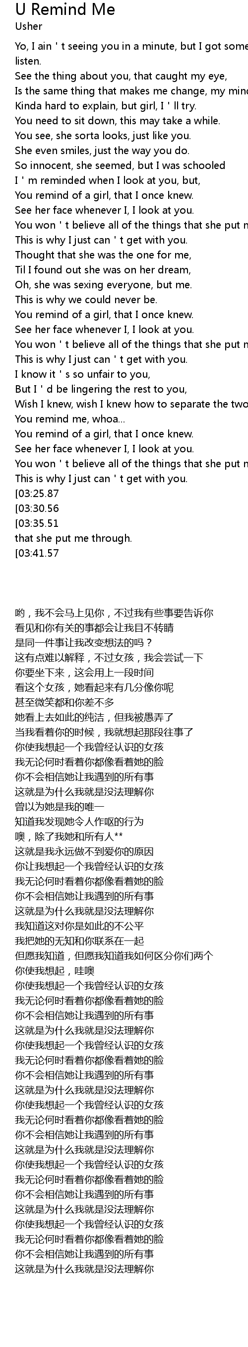 | [00:48.77] | I'm reminded when I look at you, but, |