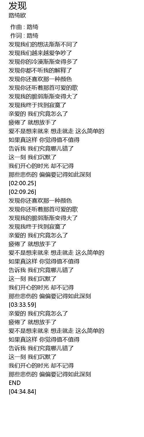 | [02:34.26] | 发现我终于找到寂寞了 |