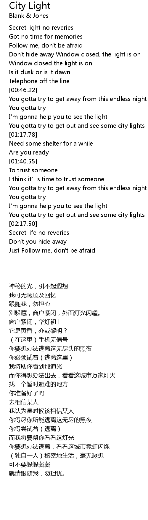 | [02:04.83] | You gotta try to get out and see some city lights |