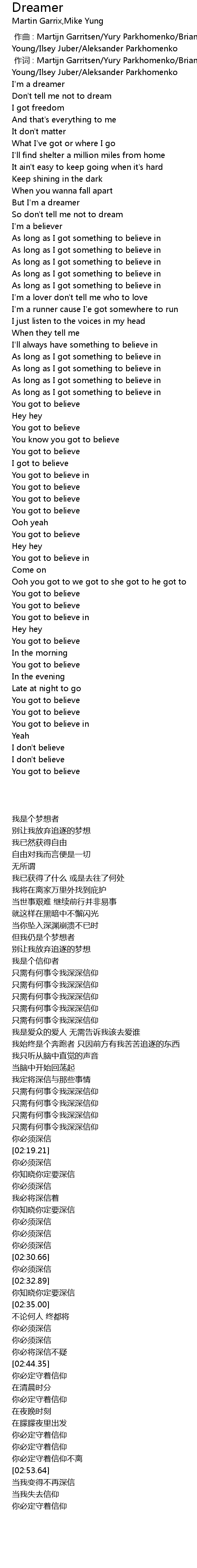 | [00:01.000] | 作词 : Martijn Garritsen/Yury Parkhomenko/Brian Lee/Michael Young/Ilsey Juber/Aleksander Parkhomenko |