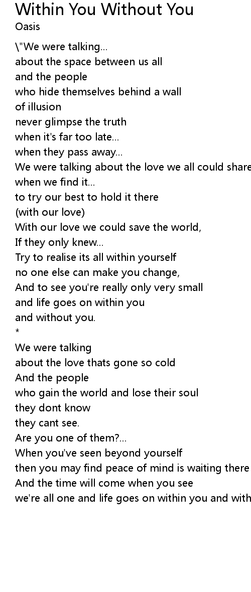 we're all one and life goes on within you and without you.\" |