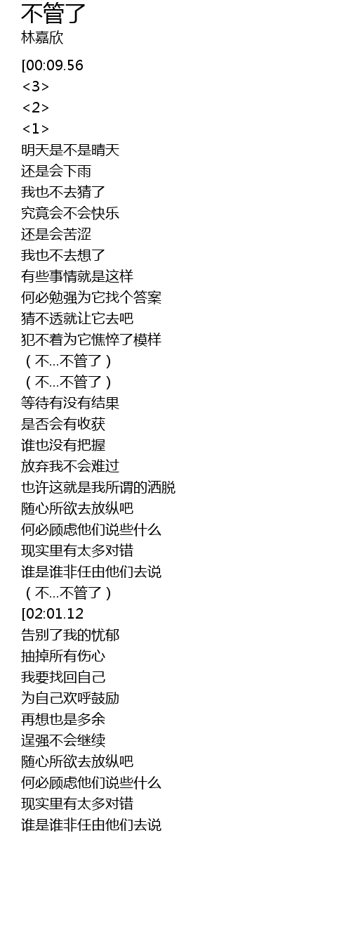 | [02:08.21][02:01.12][01:39.51] | bù... wǒ bù guǎn le |