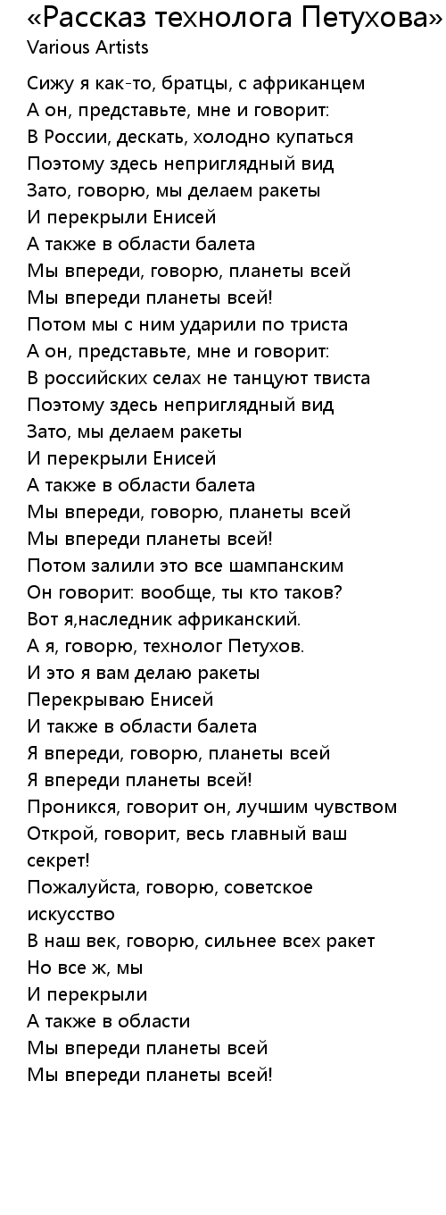 А я, говорю, технолог Петухов. |